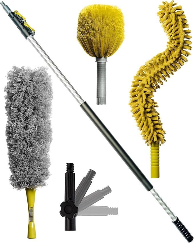 DOCAZOO DocaPole High Reach Dusting Kit with 5-12 (1.5-3.5m) Foot Extension Pole // Cleaning Kit Includes 3 Dusting Attachments // Cobweb Duster // Microfiber Duster // Ceiling Fan Duster