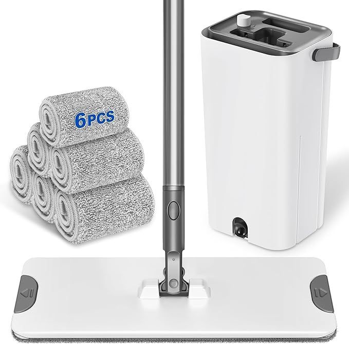 Floor Mop and Buckets Sets - Flat Head with 6 Reusable Microfibre pads for Dry Wet Cleaning - Housewife Dust Mop for home Bathroom Kitchen Laminate Wooden Floors